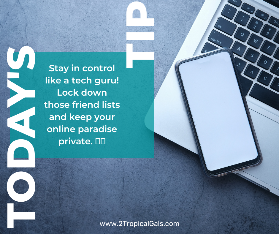 🌴📱 Hey there, tech-savvy pals! It’s Tech Tip Tuesday with The 2 Tropical Gals! 🌺🌊 Today, let’s talk about something crucial – locking down your friend lists on social media. 🔒👥 Keeping your online circle secure is like having your own little oasis. By controlling who can see your connections, you’re adding an extra layer of privacy to your digital paradise. So, dive into your settings, adjust those permissions, and let’s keep your virtual beach party exclusive! 🏖️😎 Remember, a little control goes a long way in the tech world! 💻🔐 #TechTipTuesday #PrivacyMatters #2TropicalGals